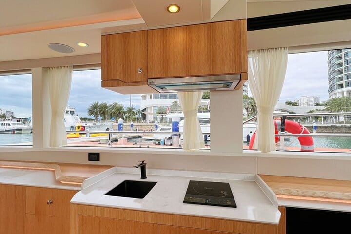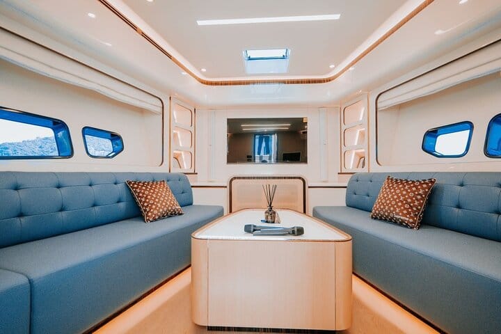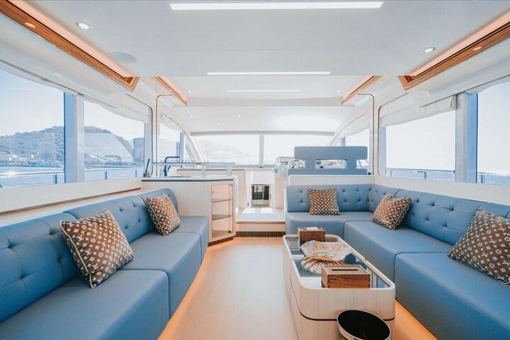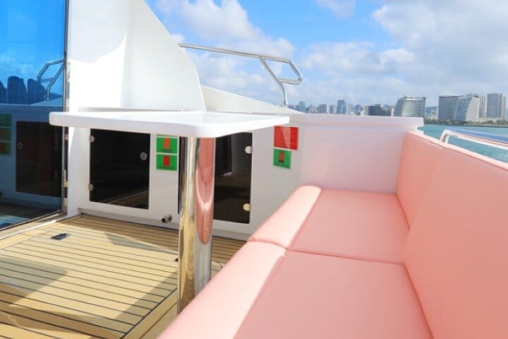 Dive into thrilling water sports, blast your favorite tracks via the onboard Bluetooth sound system, and sip on refreshing drinks,Self-driving yacht experience is also available for participation. What’s more, every one of our three uniquely styled, fully-equipped premium yachts comes with a built-in KTV room—sing your heart out with the sea breeze in your hair for an unforgettable experience.