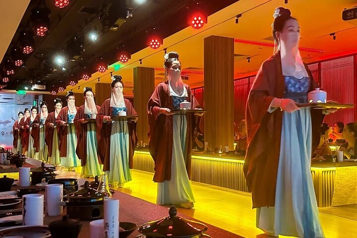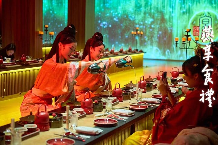 Discover the Palace Banquet at Qianmen Street, where dining becomes a time-traveling spectacle. Immerse yourself in a 1.5-hour dynastic feast featuring lavish Hanfu costumes (available for rental), exquisite court dances, and live performances inspired by traditions from the Tang to Qing dynasties. Savor seasonal imperial cuisine served alongside tea ceremonies and interactive rituals.