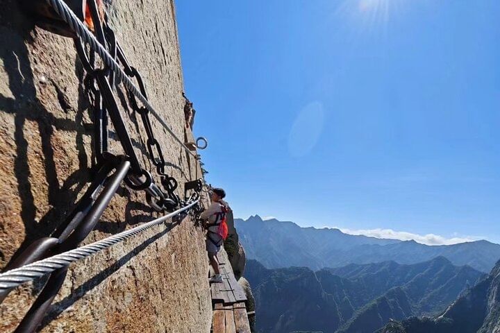 You can enjoy professional services and a customized itinerary during your private tour of Mt. Huashan. A professional driver and your guide will pick you up at your hotel and take you from Xi'an to Mt. Huashan. After arriving at Mt. Huashan, the driver will help you get the tickets and enter the attraction. Then you will take the cable car up the mountain to start your climbing tour. While you are enjoying the beautiful scenery of Mt. Huashan, the driver will be waiting for you at the foot of the mountain. After you come down the mountain tiredly, you can take a comfortable private car back to Xi'an to end this interesting Mt. Huashan tour.